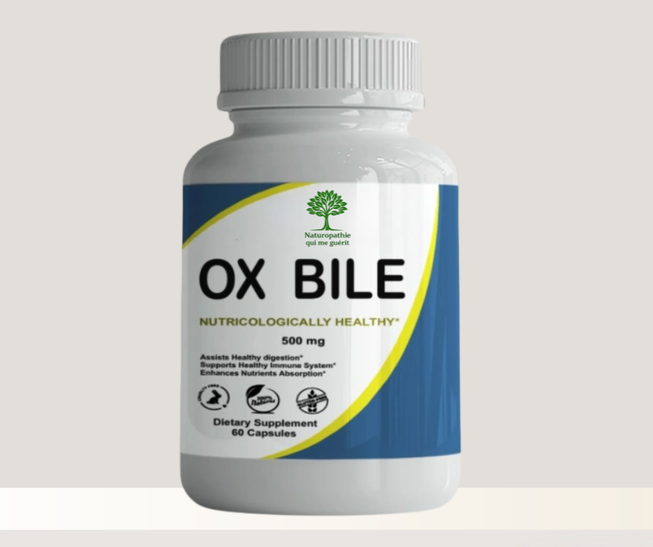 Notre complément alimentaire ‘’Ox Bile ‘’ (bile de bœuf), imite la bile humaine, et aide à la digestion des graisses, favorisant l’absorption des nutriments et prévenant les problèmes digestifs. *