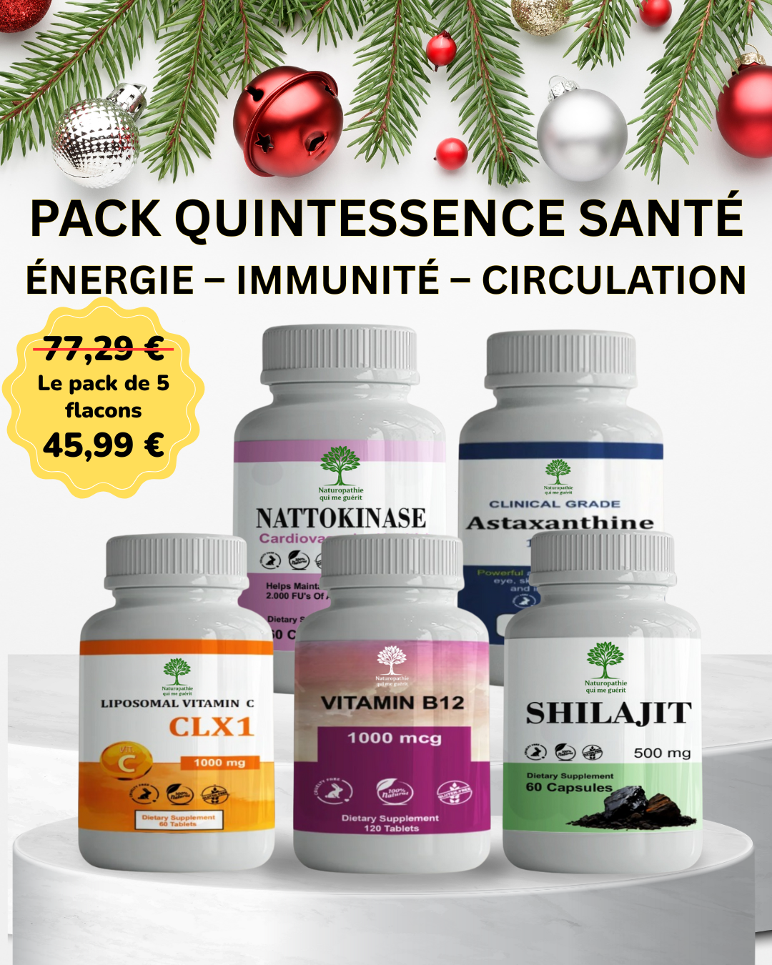 Nattokinase 100 mg + Astaxanthine + Vitamine C Liposomale CLX1+Vitamine B12+ Shilajit