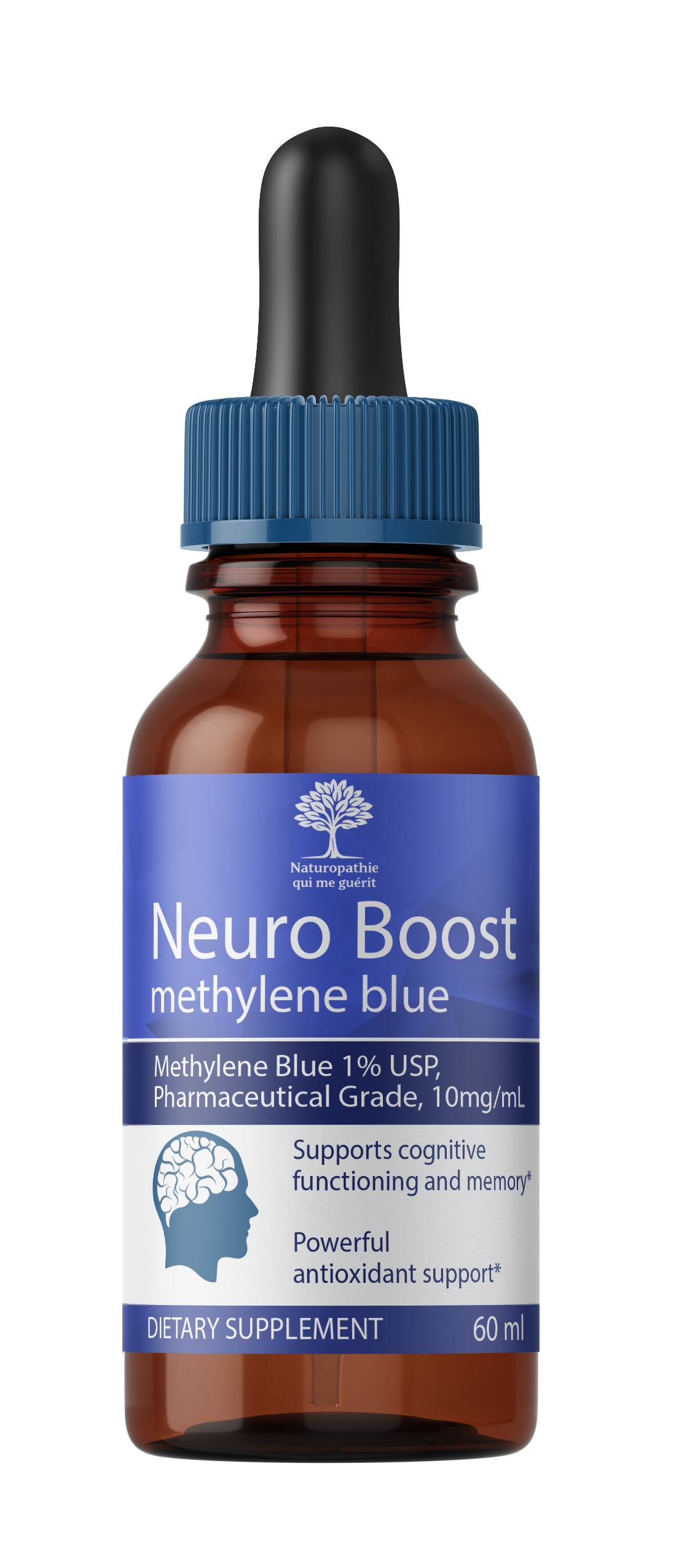 Neuro Boost est une solution liquide à base de bleu de méthylène de qualité pharmaceutique (USP, 1 %).