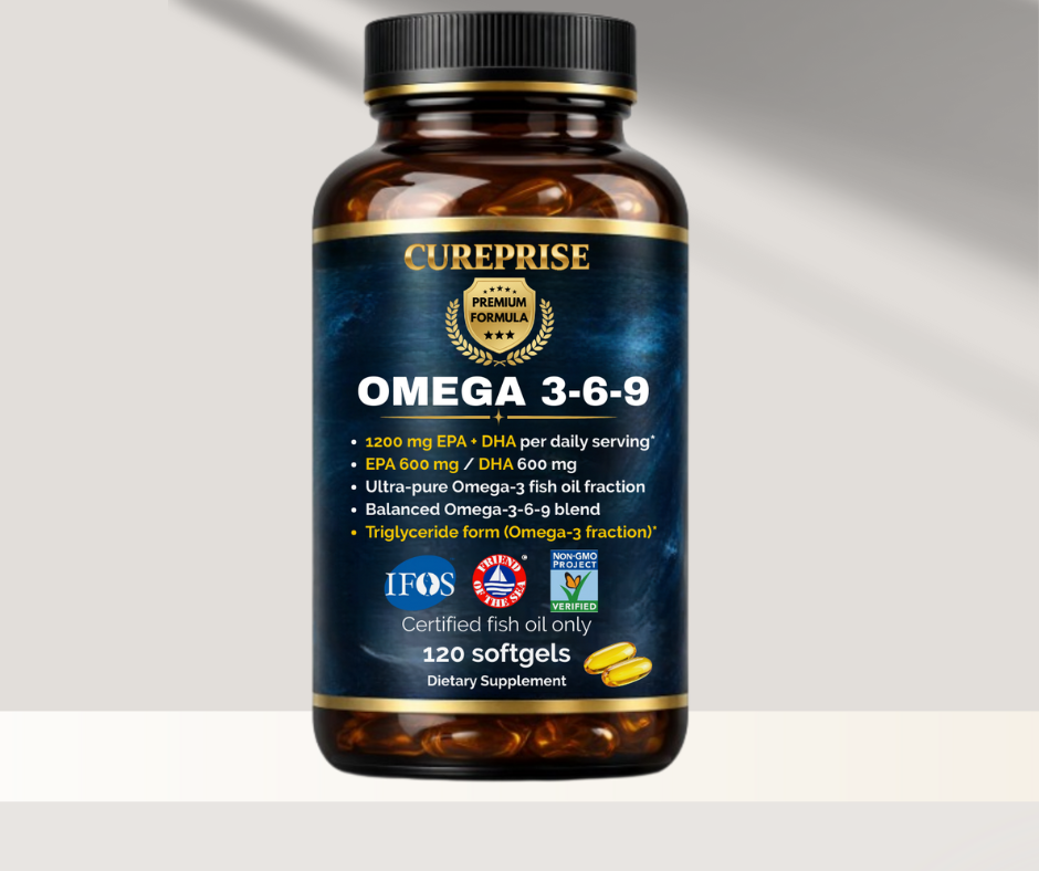 OMEGA 3-6-9 – Premium Formula de Cureprise a été formulé pour offrir un apport optimal et équilibré en acides gras essentiels, issus d’huiles hautement purifiées et sélectionnées selon des standards de qualité stricts. Cette formule premium associe la puissance des Oméga-3 marins à des Oméga-6 et Oméga-9 soigneusement équilibrés, dans une forme hautement biodisponible.