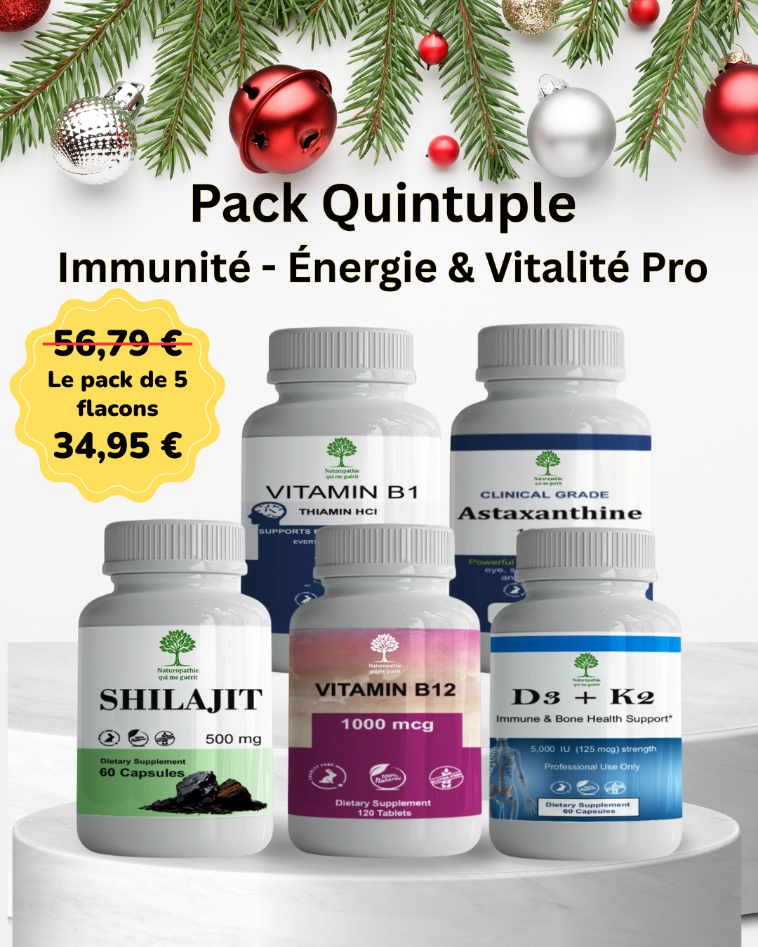 Vitamine B1 + Astaxanthine +Shilajit + Vitamine B12 + Vitamines D3 + K2